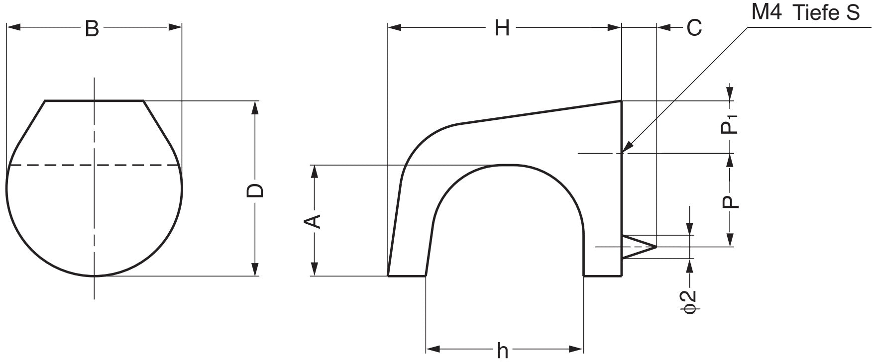 - Die Befestigung erfolgt mithilfe der im Lieferumfang enthaltenen Schrauben (Flachrundkopfschraube M4 × 25 mm)