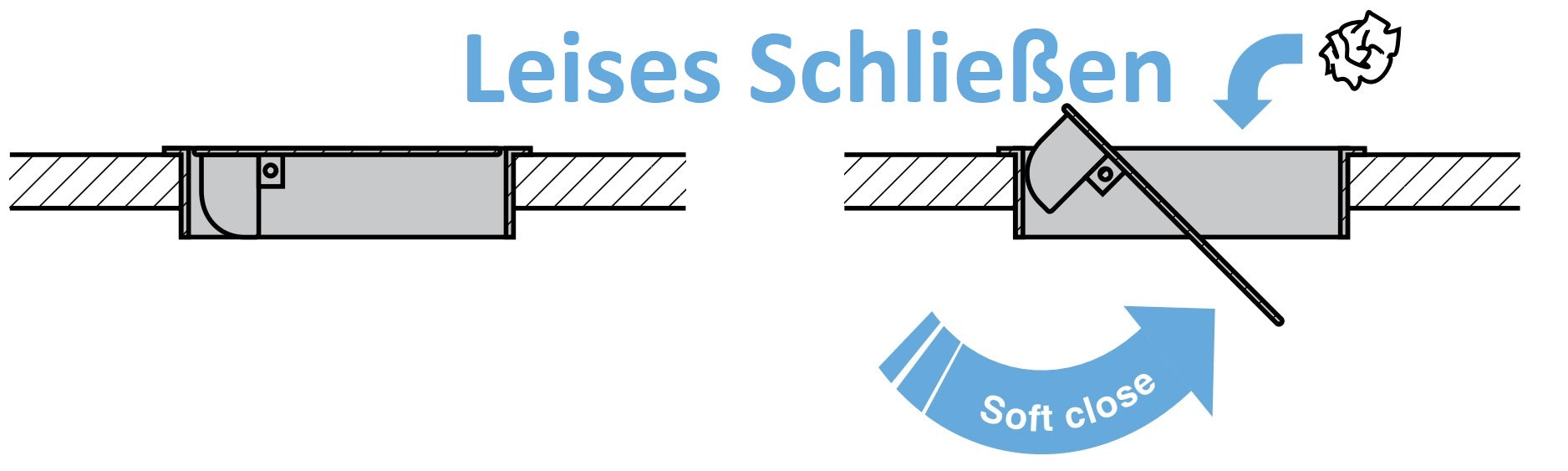Anwendung: Selbstschließende Edelstahlmüllklappe, für Küchenmöbel und viel mehr. Hochwertige Müllklappe AD-KH020-HL aus rostfreiem V2A Edelstahl (SUS304) mit Selbstschließung hat einen Schließdämpfer. Der Soft-Close Dämpfer sorgt dafür, dass die Edelstahlmüllklappe sanft und geräuschlos schließt. [caption id="attachment_133860" align="alignnone" width="420"]