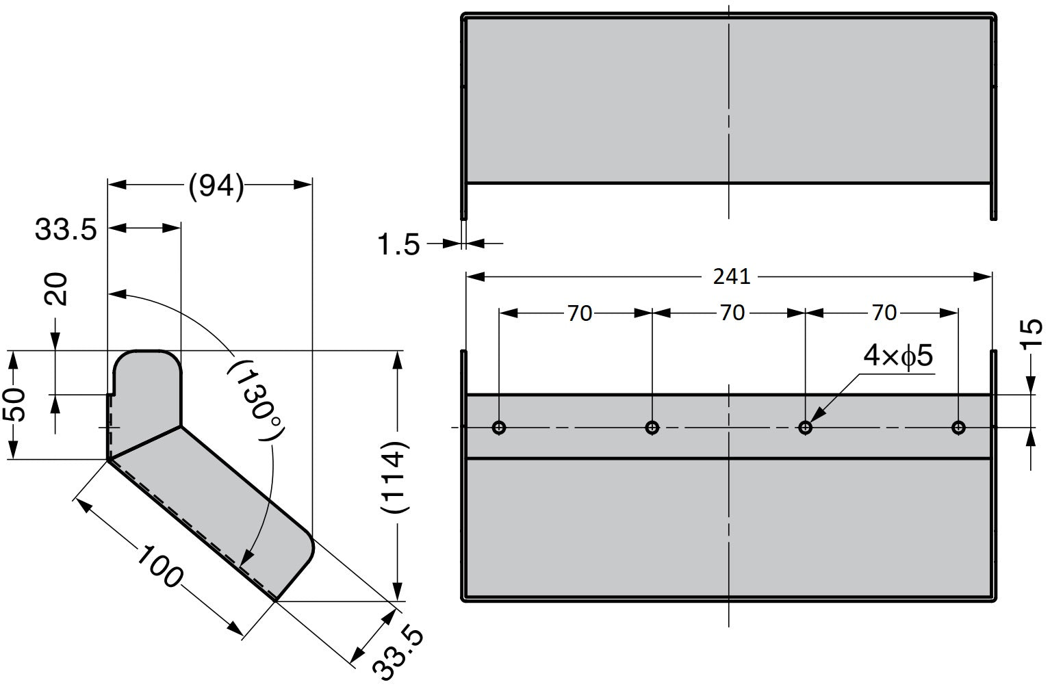 - Das Edelstahlleitblech AZ-SLP230 hat vier Befestigungslöcher mit dem Durchmesser ⌀5 mm (13/64″)