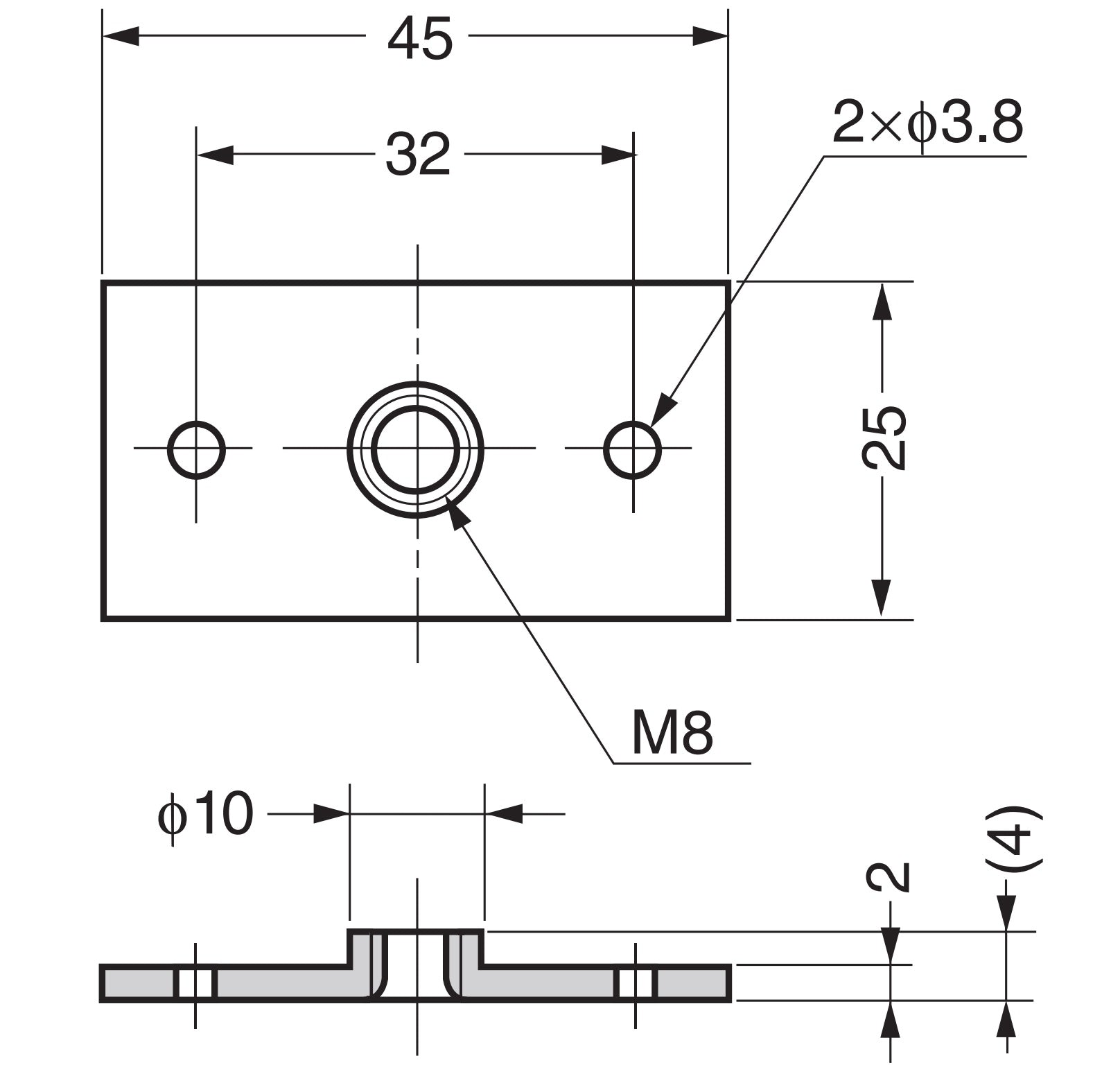 4 Stück rechteckige Anschraubplatte mit M8 Gewinde, Befestigungsplatte, aus massiver Zinklegierung, 45 mm (1,8″), AD-558. Montageplatte, für Möbelfüße, Möbelrollen, Maschinenfüße, Schrankbeine, Sofafüße und viel mehr, von Sugatsune / LAMP® (Japan)