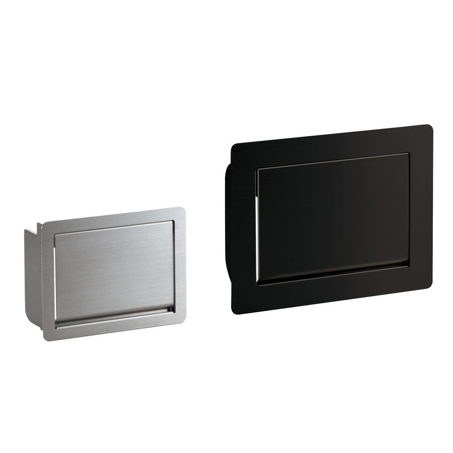 Hochwertige rechteckige Müllklappe für die senkrechte Montage mit Soft-Close, aus rostfreiem Edelstahl, Oberfläche: satiniert matt, 182 mm (7,2″), AZ-GD180-HL. Edelstahlmüllklappe, für Gastronomie und viel mehr, von Sugatsune / LAMP® (Japan)