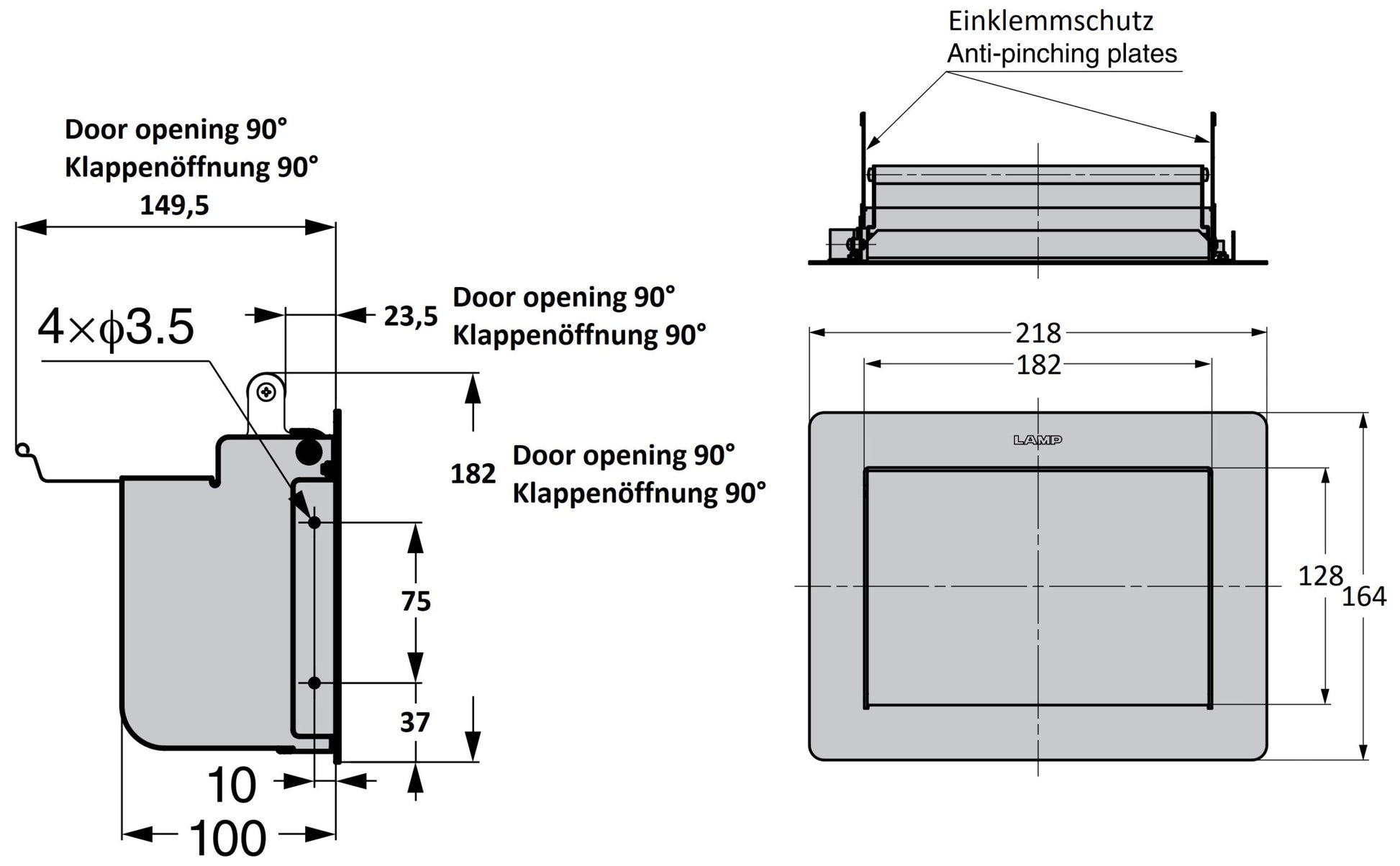 - Abmessungen der Müllklappe: 218 mm (8-37/64″) x 164 mm (6-29/64″)