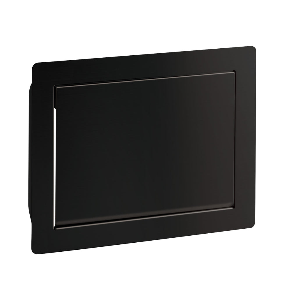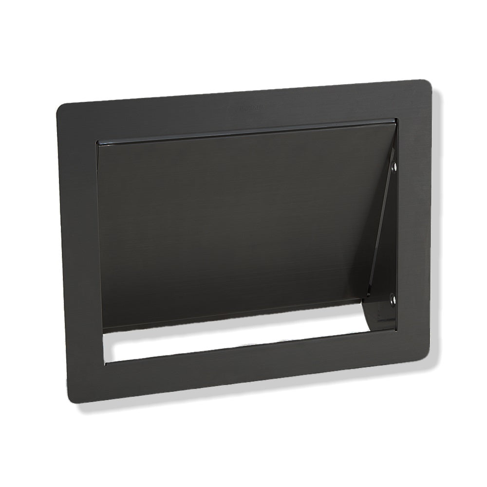 Hochwertige rechteckige selbstschließende Müllklappe für die senkrechte Montage, mit Soft-Close Schließ-Dämpfer, aus rostfreiem Edelstahl (V2A), Oberfläche: schwarz, AZ-GD310-BL, Größe: 310 mm (12,3″)