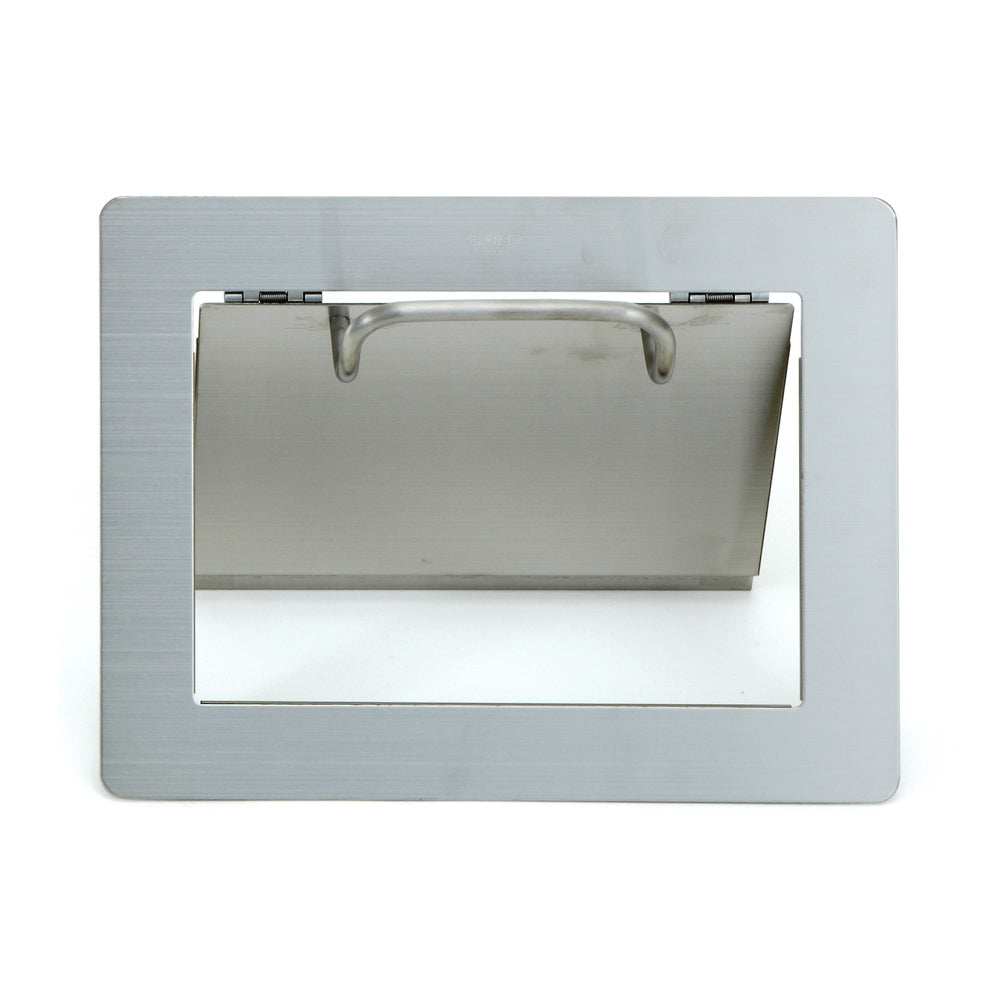 Hochwertige rechteckige Müllklappe mit Griff, für die senkrechte Montage, aus rostfreiem Edelstahl, Oberfläche: satiniert matt, 234 mm (9,3″), AZ-HD230-HL. Edelstahlmüllklappe, für Gastronomie und viel mehr, von Sugatsune / LAMP® (Japan)