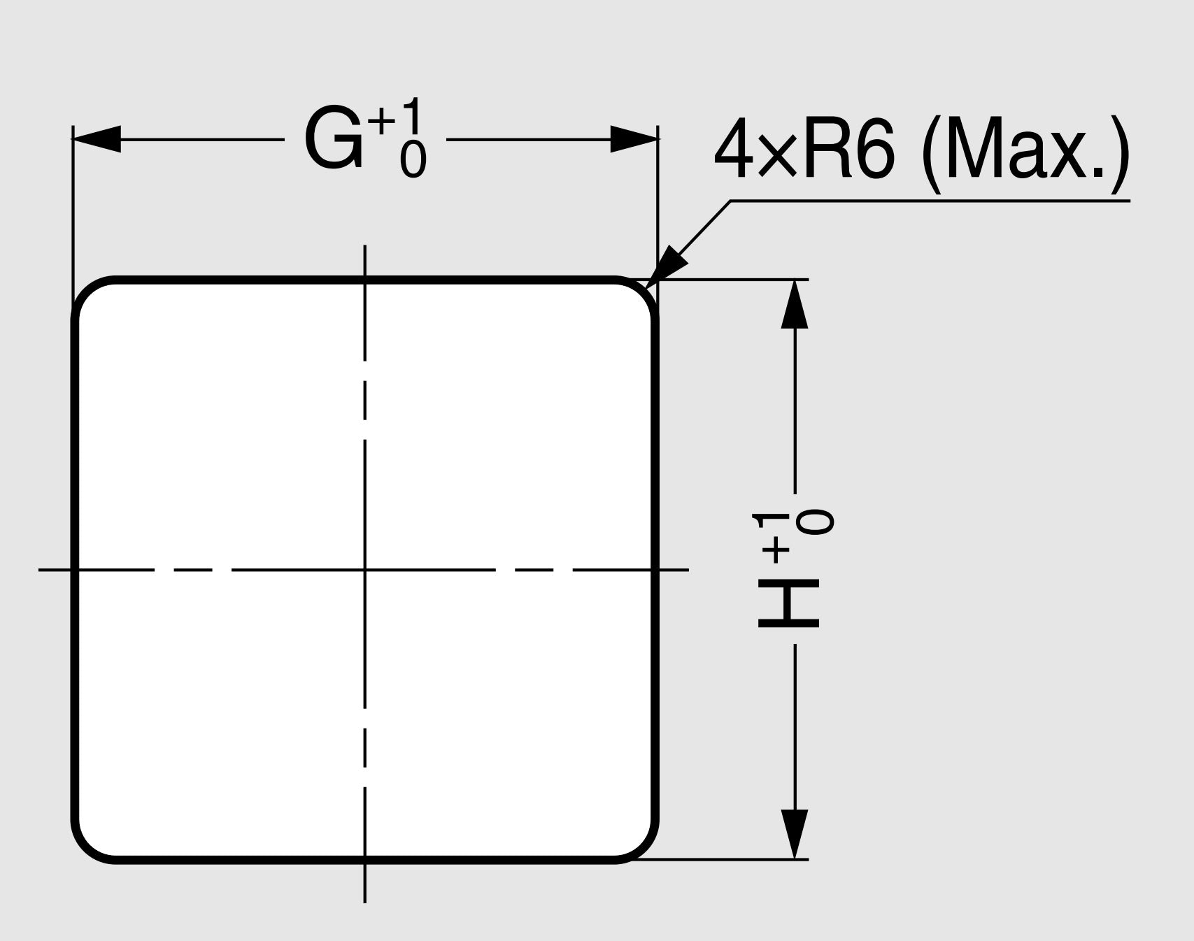 - Für die Montage des Mülldurchwurfs AN-KH028-HL muss in der Korpuswand ein Ausschnitt mit den Maßen (G x H) 277 mm (10-29/32″) x 277 mm (10-29/32″) durchgeführt werden (für weitere Details s. Montagezeichnung)