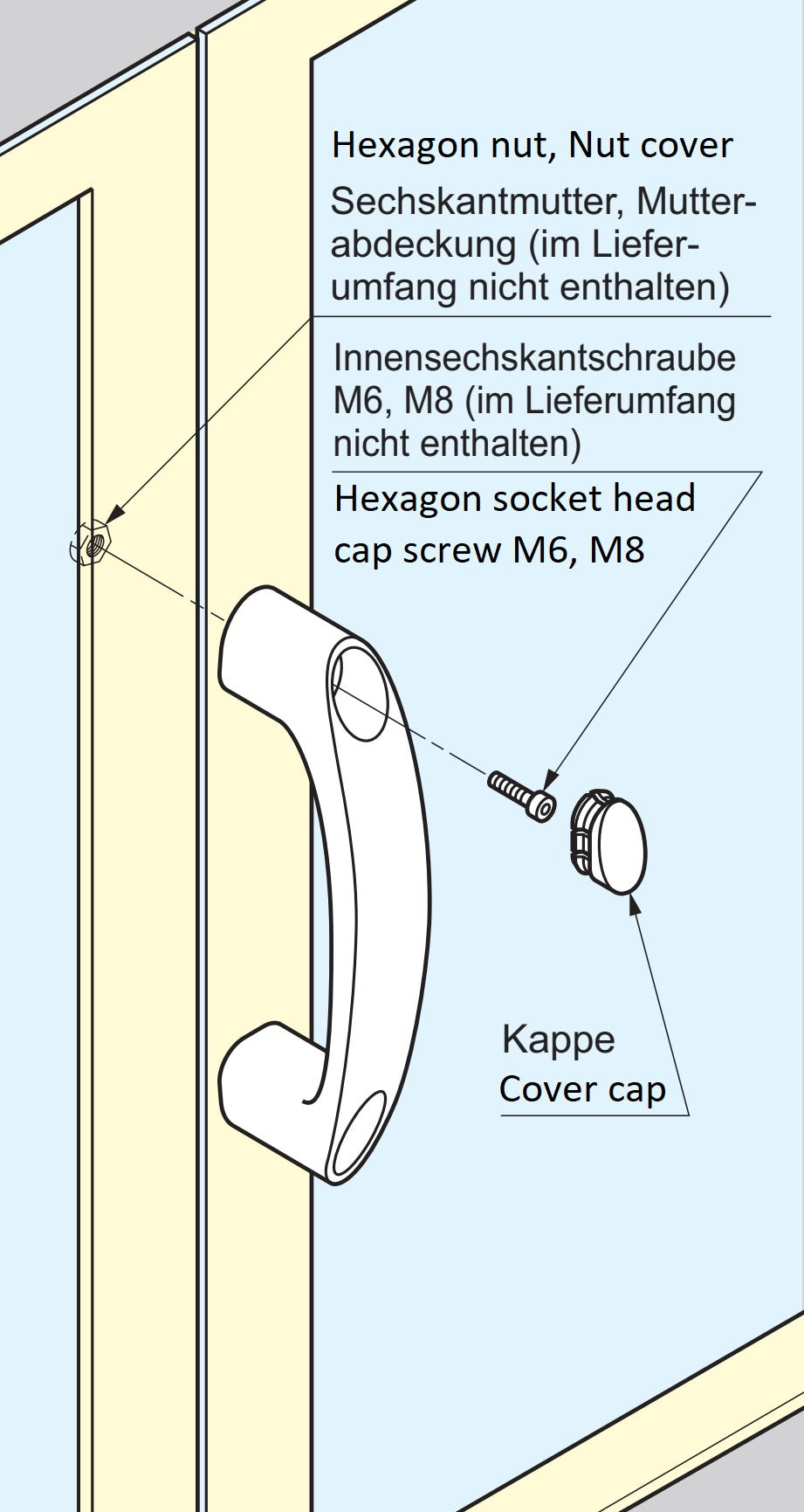 - Der Griff MJH-120-YE kann sowohl von der inneren Seite als auch von der äußeren Seite installiert werden (für weitere Details s. Montagezeichnung)