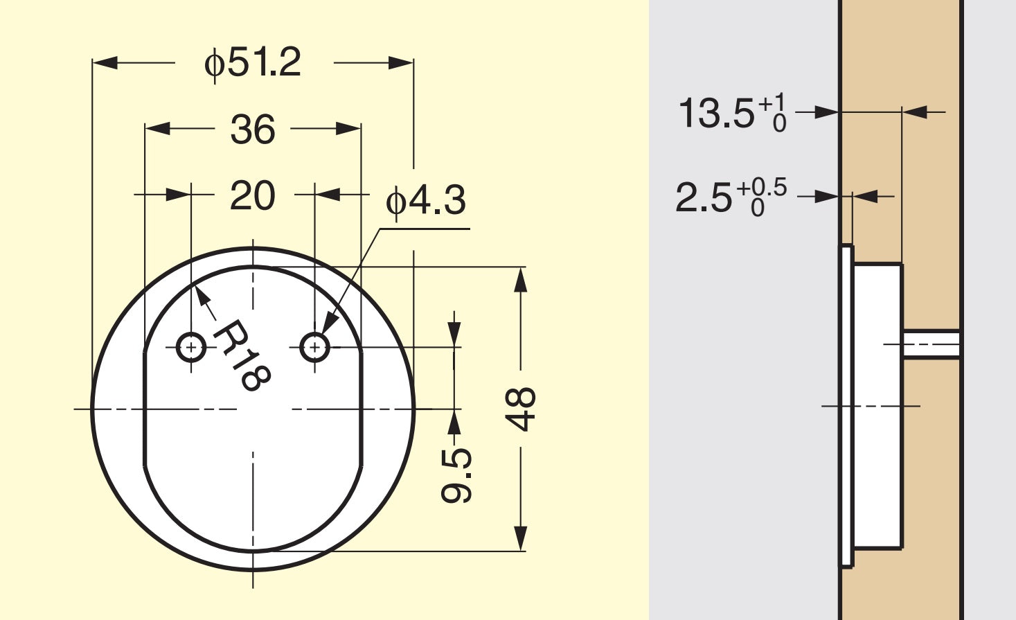 - Durchmesser des runden Klappgriffs: Φ51,2 mm (2-1/64″)