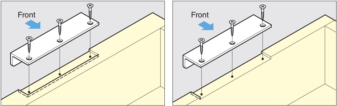 - Je nach Stärke der Front gibt es zwei Möglichkeiten der Ausfräsung (für weitere Details s. Montagezeichnung)