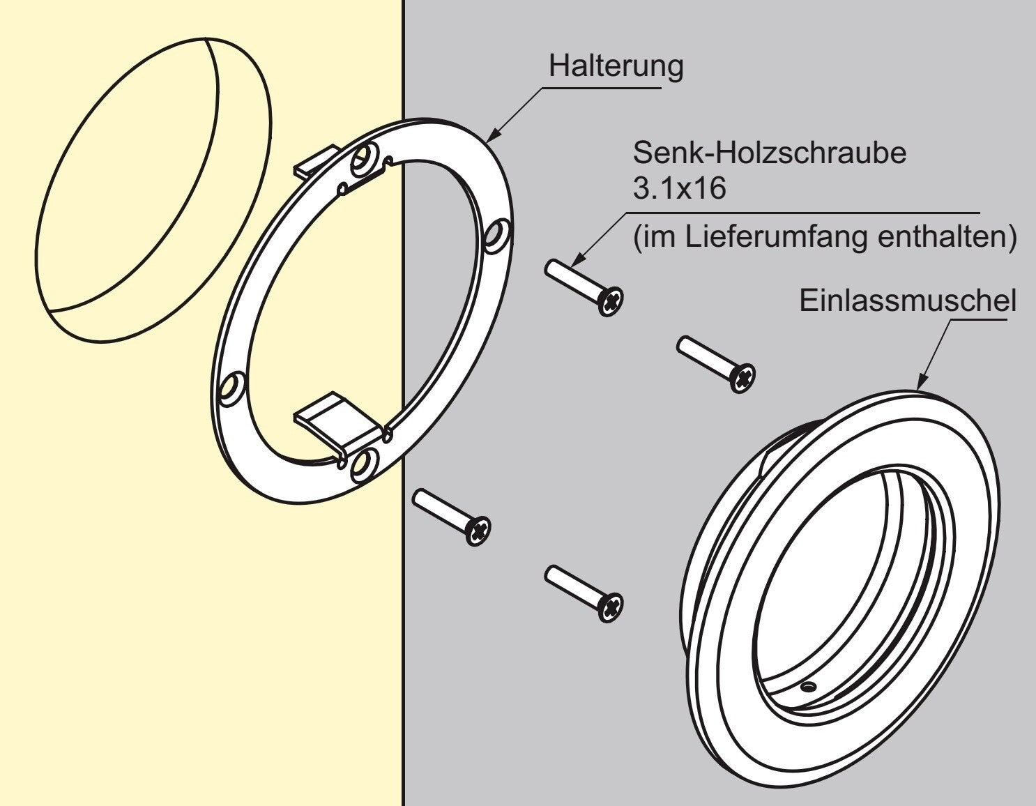 - Danach die wird die Griffmuschel in die Halterung eingeschraubt (s. Zeichnung)