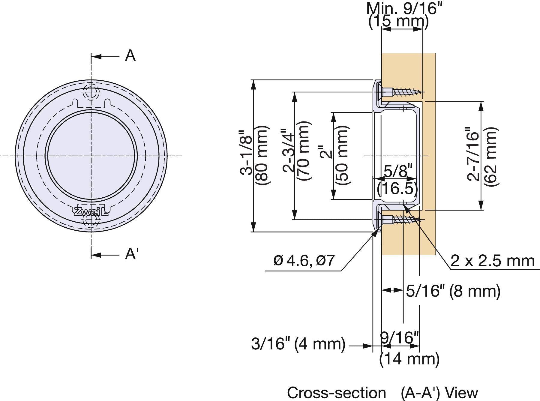 - Minimale Tiefe der Montagebohrung: 15 mm (0,6″)