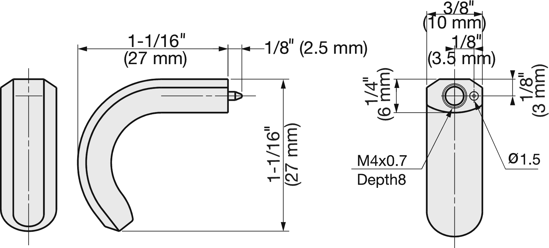 - Innere Griffbreite: 10 mm (0,4″)
